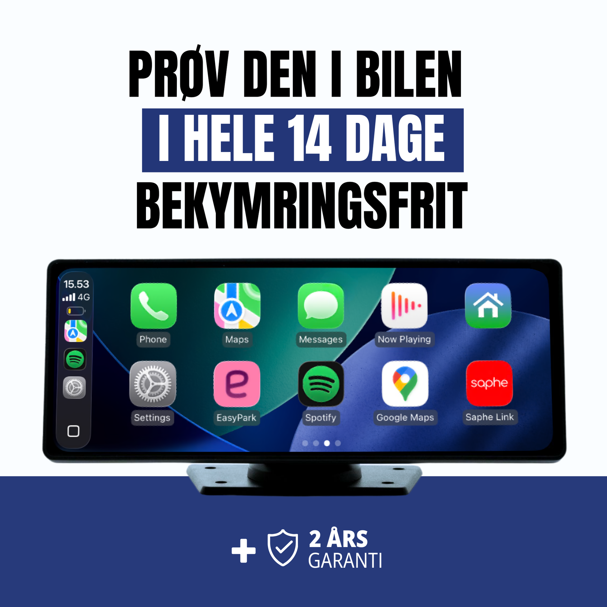 Vi tilbyder en 14-dages "Prøv-i-bilen" tilbud, hvor du kan teste GearMate 2.0 i din bil og returnere frit, hvis du ikke er tilfreds. Derudover er der 2 års reklamationsret på alle vores produkter.